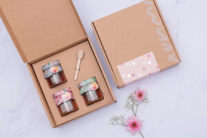 sweet home 精巧禮盒以「家」的概念呈現,裝入甜蜜的台灣蜜釀,其中「煙囪」的設計絕對是讓賓客驚艷不已的巧思!