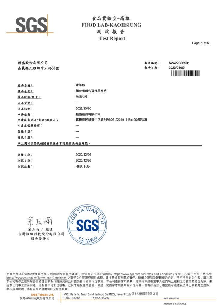 蜂蜜醋 – 檢驗報告